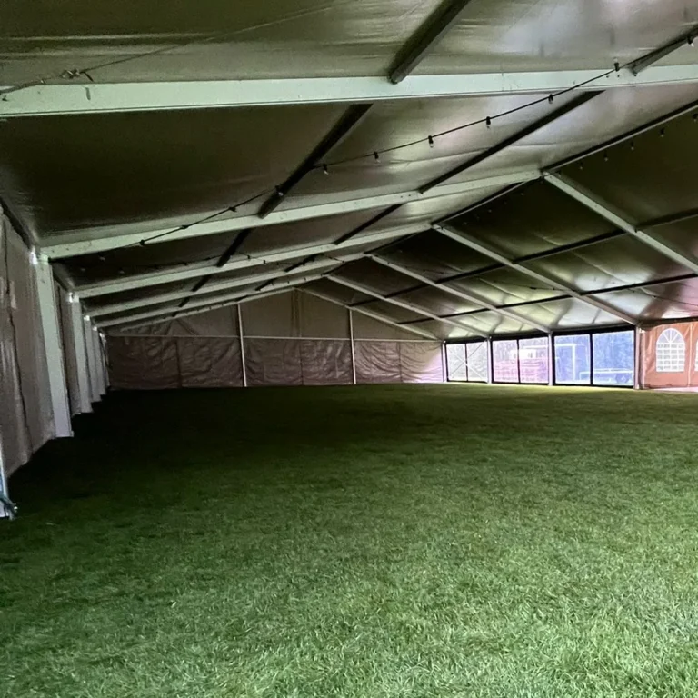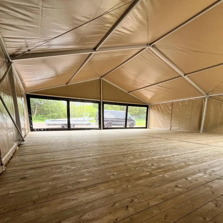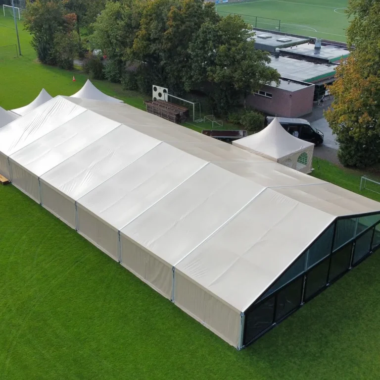 Maak indruk op jouw gasten met onze luxe en sfeervolle aluhal van 15×5 meter!
